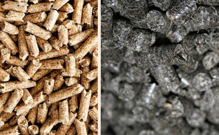 Пелети (пеллети) з лушпиння соняшника та пелети з дерева.